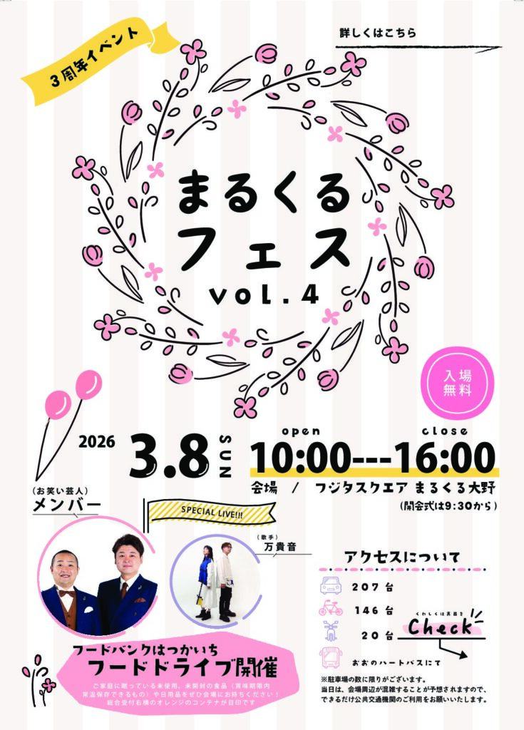 魅力ある機能がまるごとそろった施設にみんなが集まってくる、仲間の輪が広がっていく、「フジタスクエアまるくる大野」を創ります。