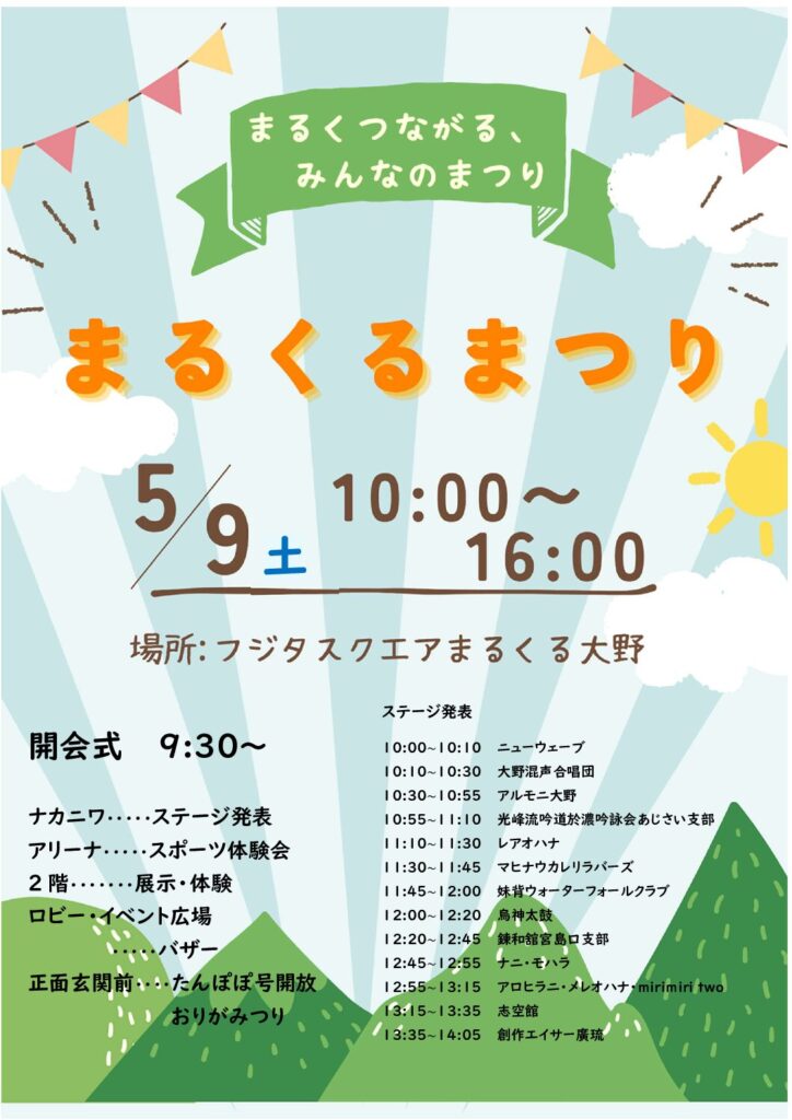 廿日市市多世代活動交流センター「フジタスクエアまるくる大野」は、大野市民センターや大野体育館、大野図書館に、新たに子育て支援機能が加わった複合施設です。