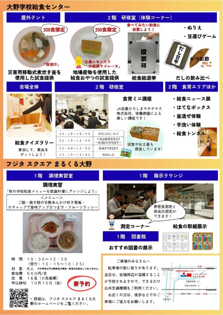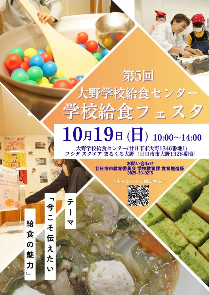 10月19日(日)10:00~14:00で開催する「第5回大野学校給食センター 学校給食フェスタ」