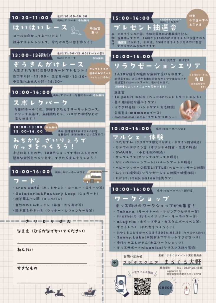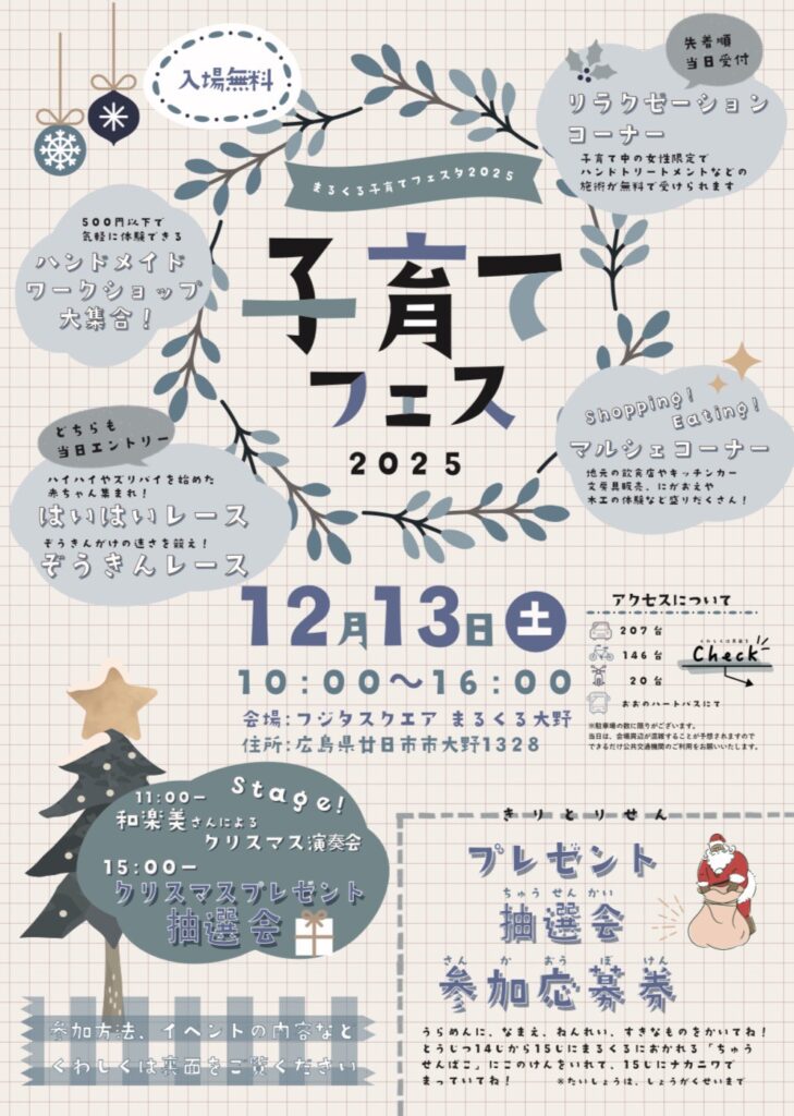 12月13日(土)10時~16時に「第2回まるくる子育てフェスタ」を開催します!