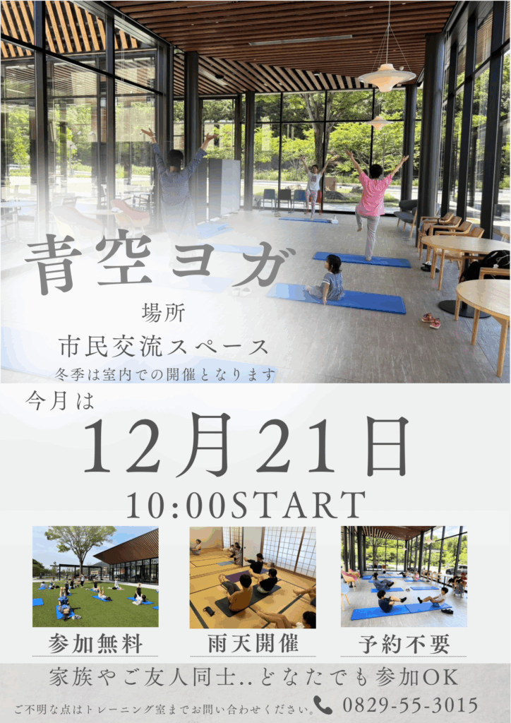 【12月21日】青空ヨガ、室内で開催します!
