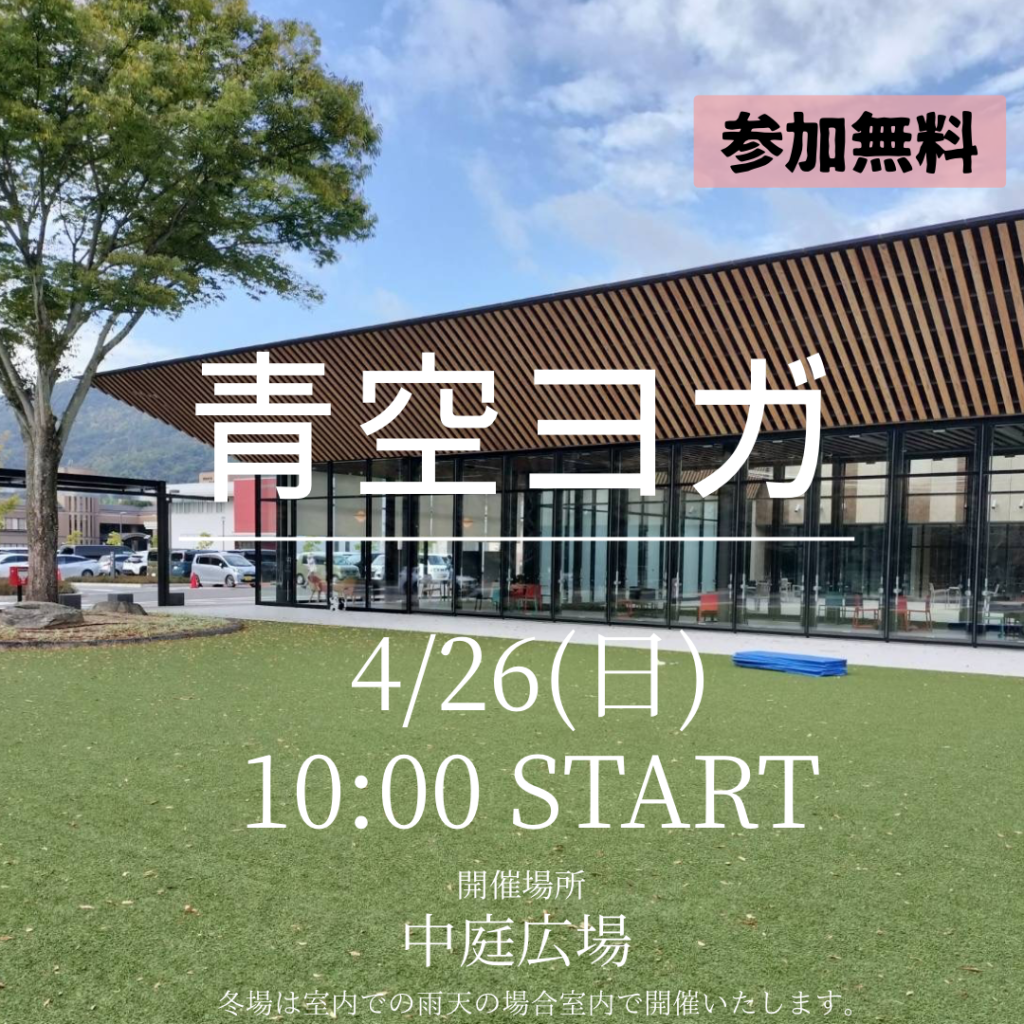 【青空ヨガ】4月26日(日)に開催します! 2026年4月18日 イベント 今月の青空ヨガは4月26日(日)10:00から芝生の所で開催します♪ 初めての方もお一人でも、手ぶらで気軽に参加していただけます。 お子様連れでの参加も大歓迎!!予約も不要です。 雨天時も室内にて開催しますので、ぜひお越しください!!